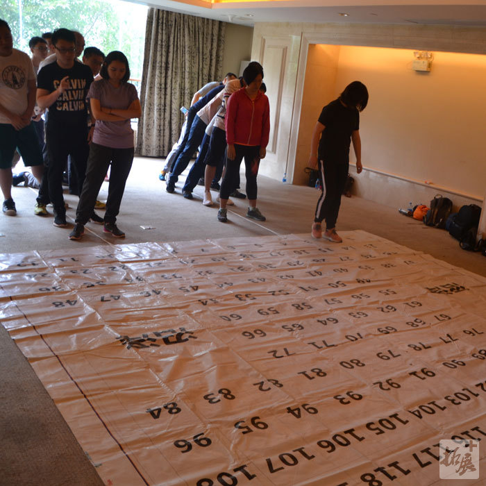 动力绳圈别称动力圈、动力绳、合力圈,本项目要求所有人围成圆,每人握住绳子的一部分围成一个圆,让团队成员依次在这个绳圈上走一圈。