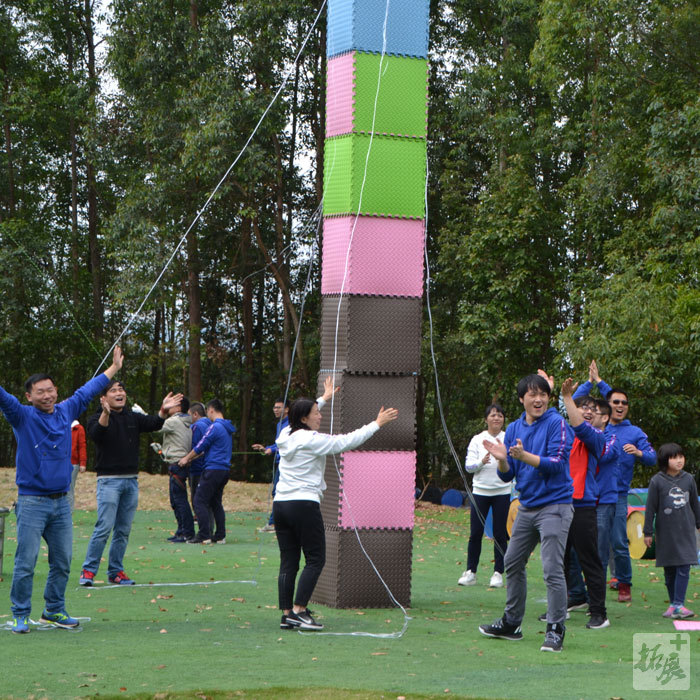 将泡沫垫组成正方形的盒子,在规定的时间当中把箱子垒得尽可能的高。