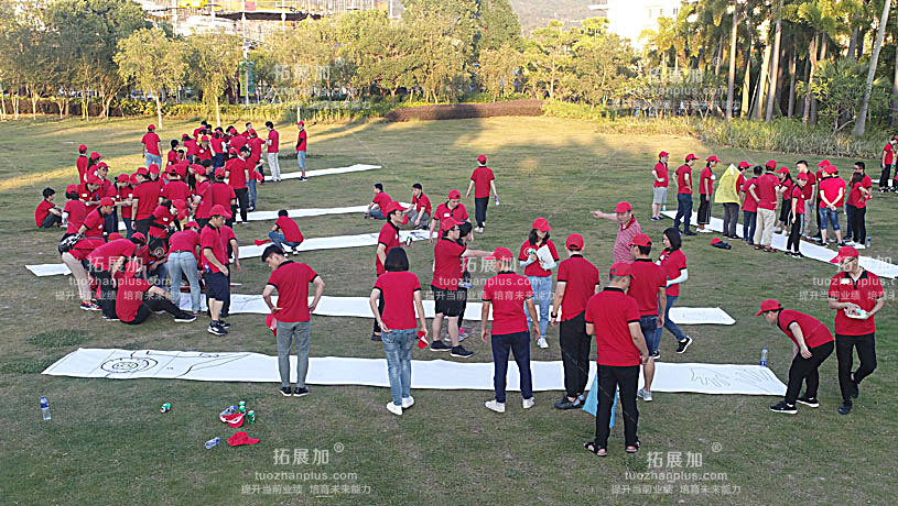 纳斯卡巨画团建需要团队合作,创作一幅巨大的画 大团队分为若干小组,每个小组负责一个部分。 每个小组会独立分到项目所需的材料,这些材料可能是足够的也可能是欠缺的。 在资源有限的情况下,团队成员通过交流,互换合作来获得自己欠缺的资源。 要完成最终的巨画,需要各个小组之间通力合作,才能确保画的线条及色彩符合整体的要求。